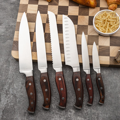 Profession elles 6-teiliges Küchenmesser set aus Edelstahl mit farbigem Holzgriff Premium-Küchen werkzeug